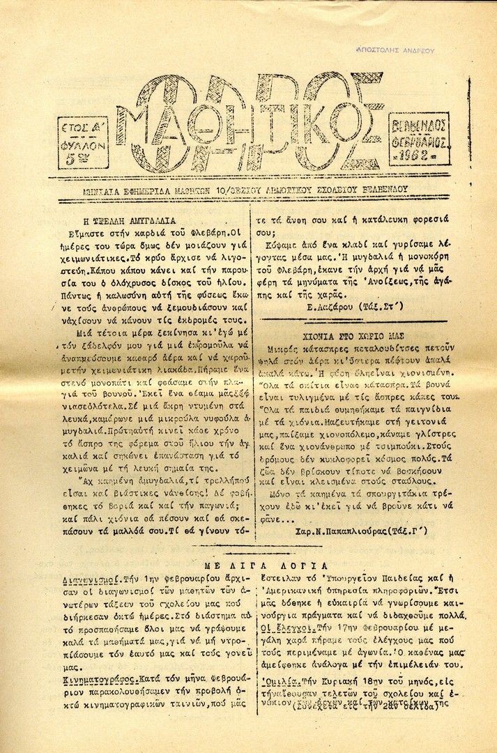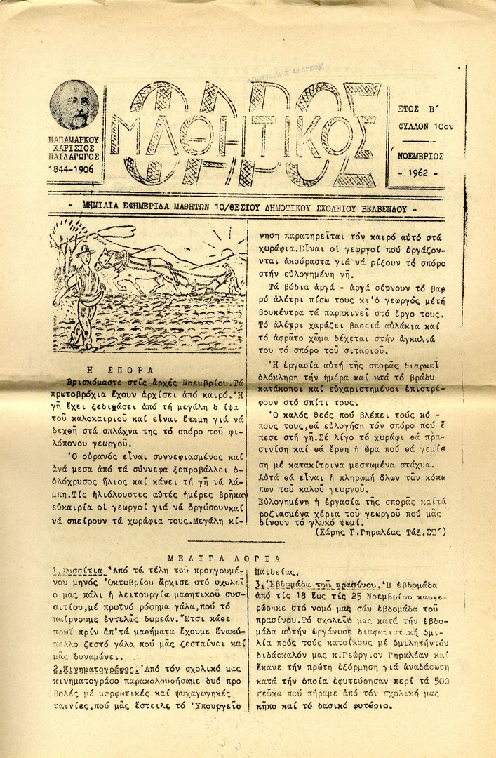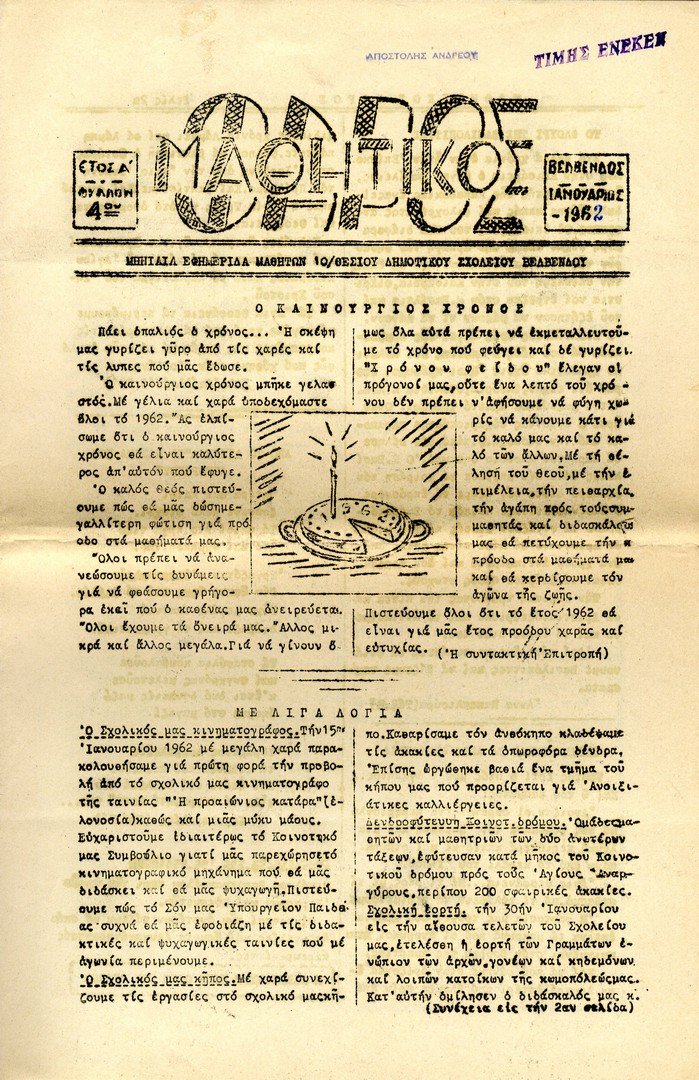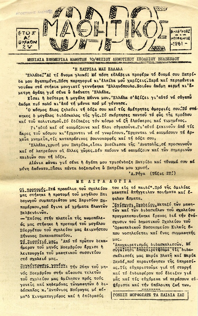 | Υπότιτλος | Μηνιαία Εφημερίδα μαθητών 10/θέσιου Δημ. Σχολείου Βελβενδού |