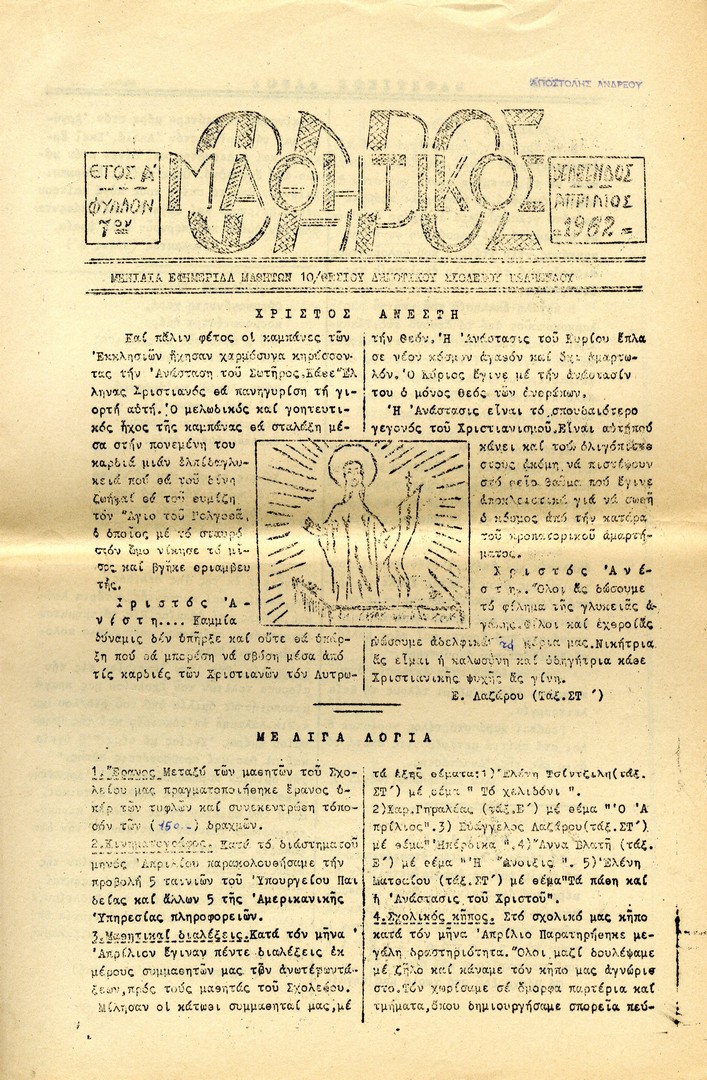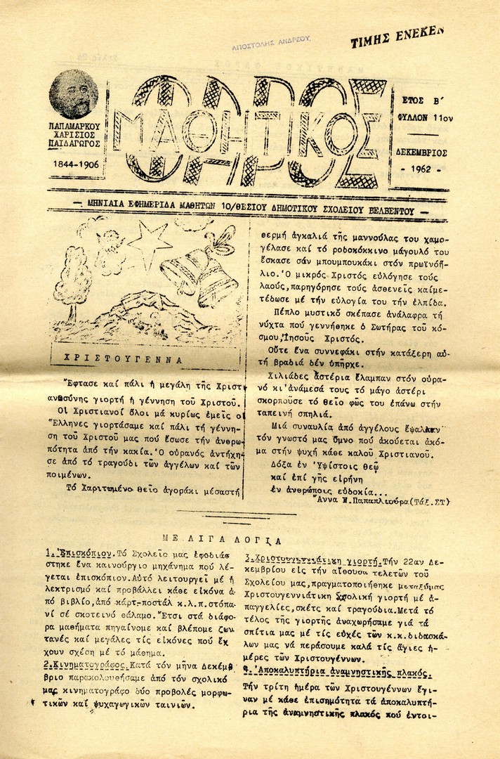 | Θέμα ως θέμα | Θρησκευτικές γιορτές Εκπαίδευση / Πρωτοβάθμια Χριστιανική ηθική Μαθητικός Τύπος Μαθητές / Μαθήτριες |