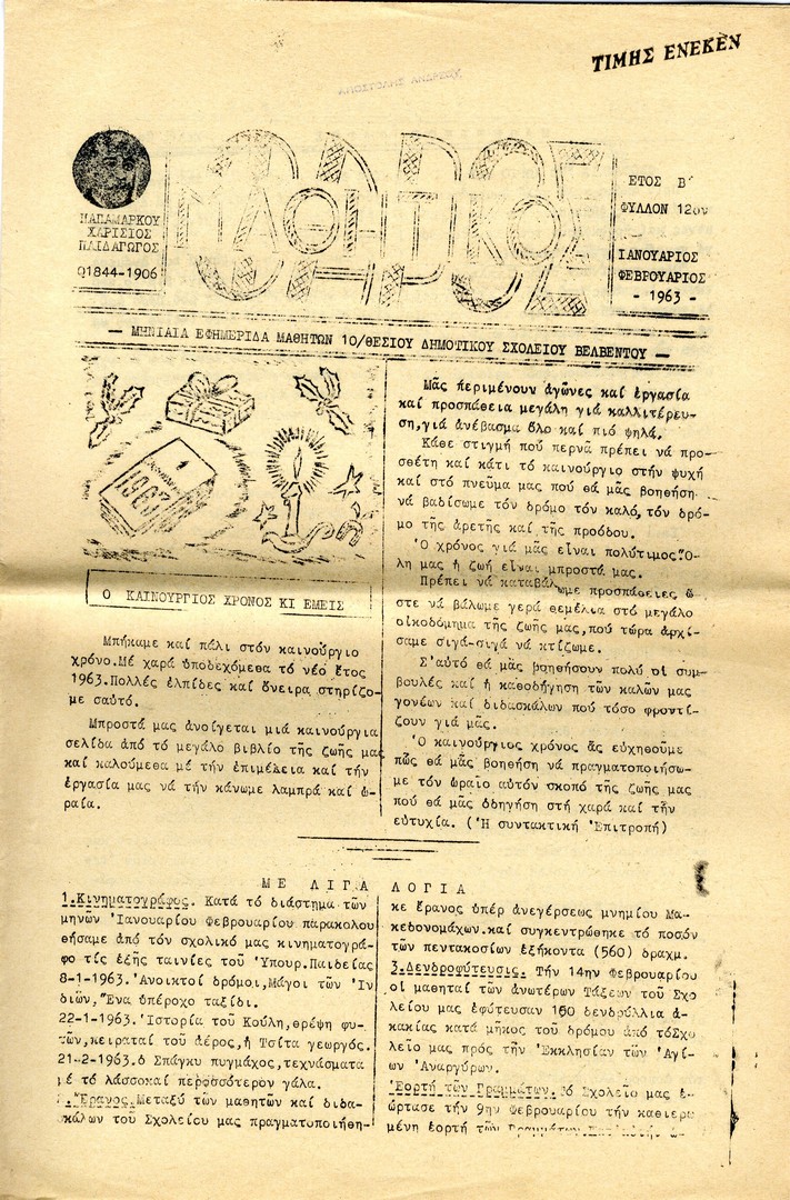 | Υπότιτλος | Μηνιαία εφημερίς των μαθητών του ιδιωτικού γυμνασίου Κοζάνης Ι. Χριστοφορίδου |