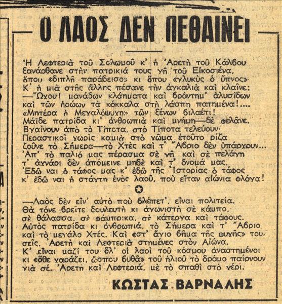 | Εφημερίδα | Ριζοσπάστης, Όργανο της Κεντρικής Επιτροπής του Κομμουνιστικού Κόμματος της Ελλάδας, (Ε.Τ.Κ.Δ) |