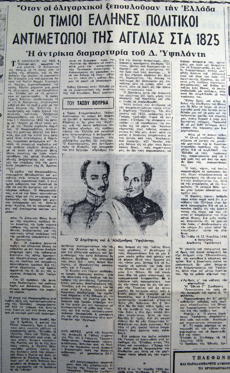 | Φυσικό πρόσωπο ως θέμα | Βουρνάς Τάσος Υψηλάντης, Δημήτριος |