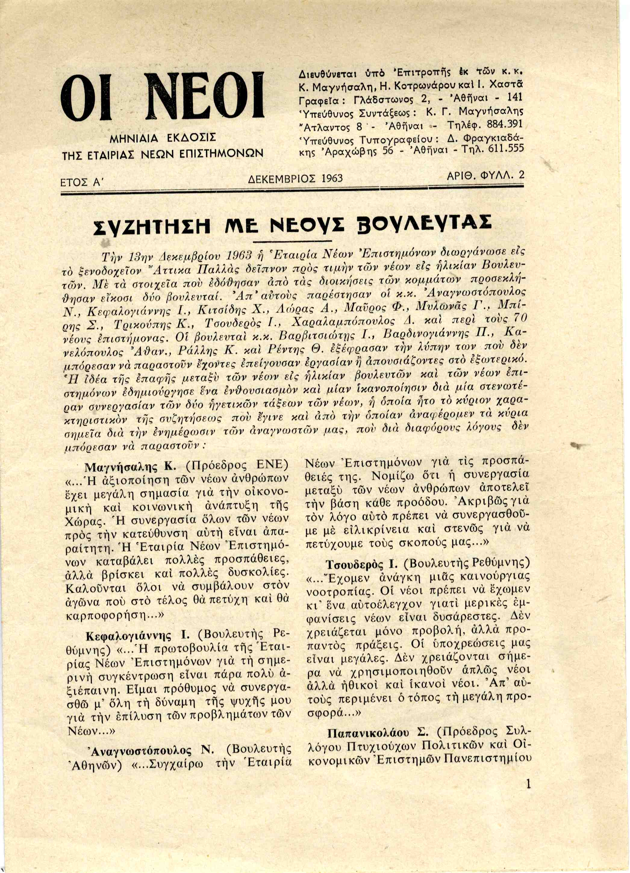 | Υπότιτλος | Mηνιαία έκδοσις της Εταιρείας Νέων Επιστημόνων |