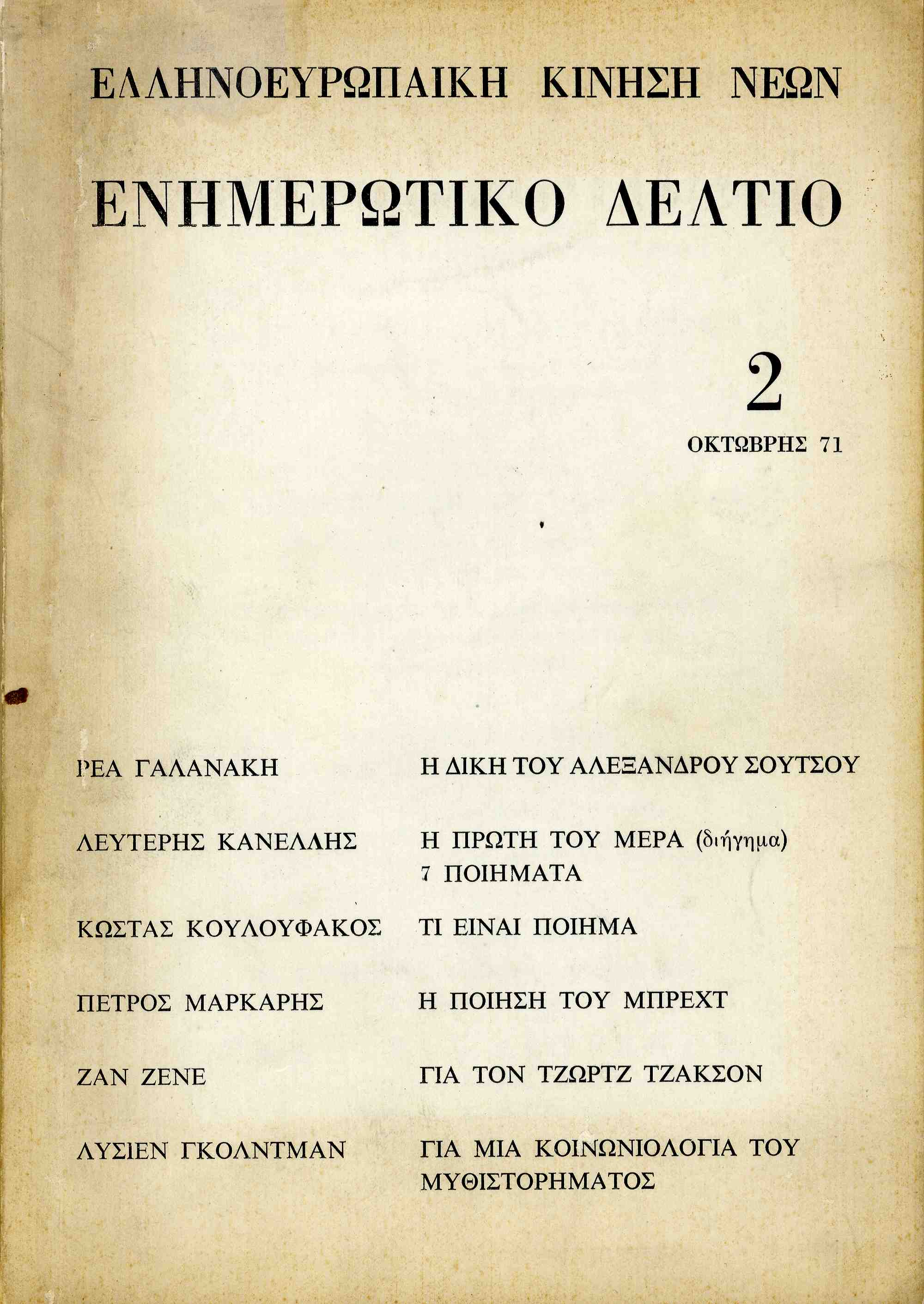 | Φυσικό πρόσωπο ως θέμα | Κουλουφάκος Κώστας Brecht Bertolt / Μπρεχτ Μπέρτολτ Ζενέ Ζαν Κανέλλης Λευτέρης Γαλανάκη Ρέα Μάρκαρης Πέτρος Γκολντμάν Λυσιέν |