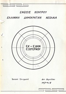 | Θέματα | ΠΑΚ (Πανελλήνιο Απελευθερωτικό Κίνημα) ΕΔΗΝ (Ελληνική Δημοκρατική Νεολαία) : Centre Union Youth ΕΚ-ΕΔΗΝ (Ένωσις Κέντρου - Ελληνική Δημοκρατική Νεολαία) |