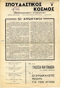 | Θέμα ως θέμα | Φοιτητικό κίνημα Σπουδαστικός τύπος Σπουδαστικό κίνημα Φοιτητικός τύπος Κοινότητα Αιγυπτιωτών Φοιτητικό κίνημα / διεκδικήσεις Φοιτητικοί σύλλογοι |