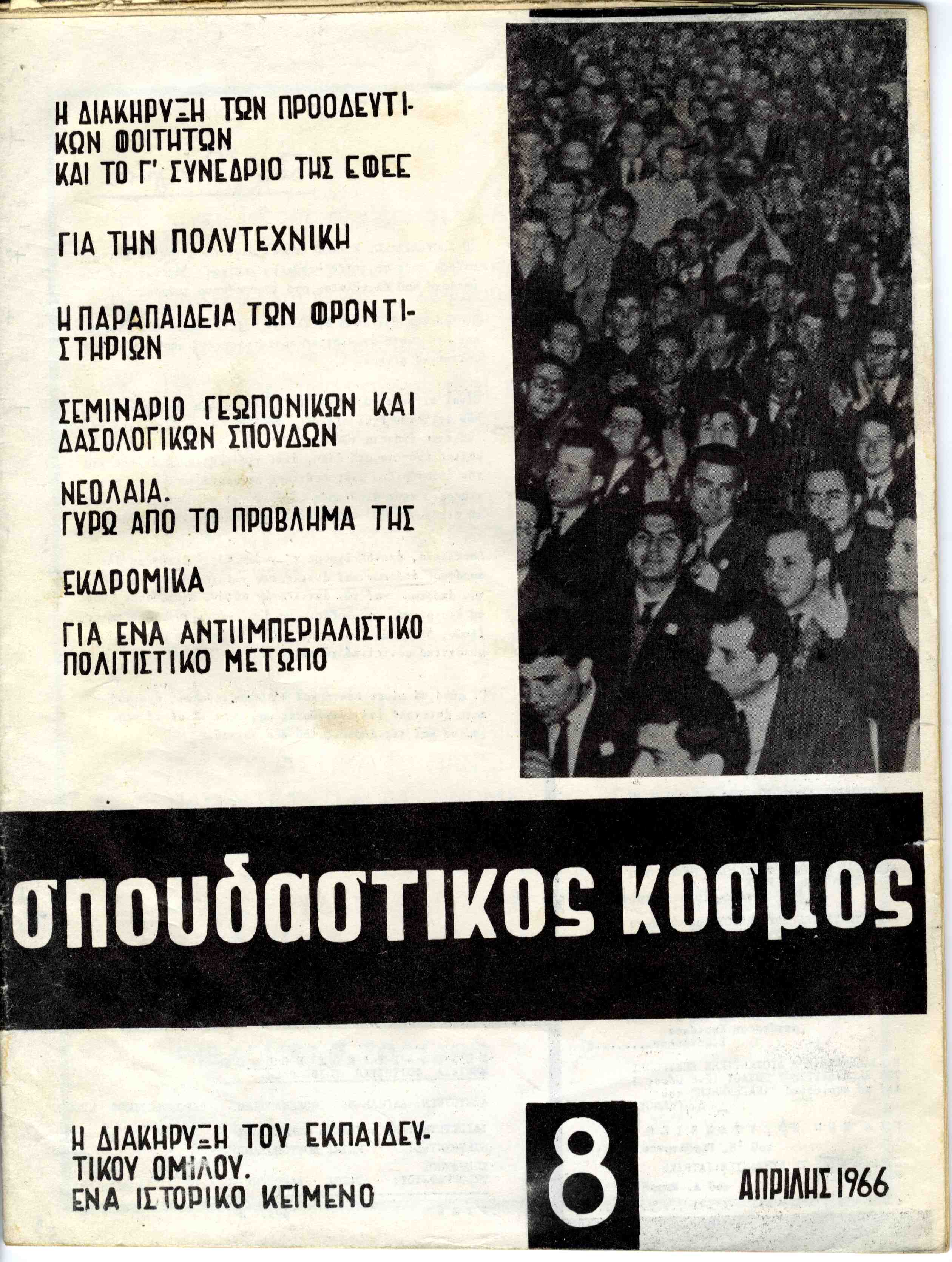 | Θέματα | ΕΦΕΕ (Εθνική Φοιτητική Ένωση Ελλάδος) : Union Nationale des Etudiants Grecs ΕΚΟΦ (Εθνική Κοινωνική Οργάνωσις Φοιτητών) ΕΦΕΕ / Γ΄ Εθνικό Συμβούλιο (1966) Κόμμα της 4ης Αυγούστου |