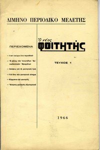 | Θέματα | Εκπαιδευτικος Όμιλος ΕΦΕΕ (Εθνική Φοιτητική Ένωση Ελλάδος) : Union Nationale des Etudiants Grecs ΕΦΕΕ / Γ΄ Εθνικό Συμβούλιο (1966) ΑΠΘ / Πολυτεχνική Σχολή Θεσσαλονίκης / Σύλλογος Φοιτητών Πολυτεχνικής Σχολής Θεσσαλονίκης ΠΠΣΠ (Προοδευτική Πανσπουδαστική Συνδικαλιστική Παράταξη) ΑΠΘ / ΣΦΙΑΠΘ (Σύλλογος Φοιτητών Ιατρικής Πανεπιστημίου Θεσσαλονίκης) |