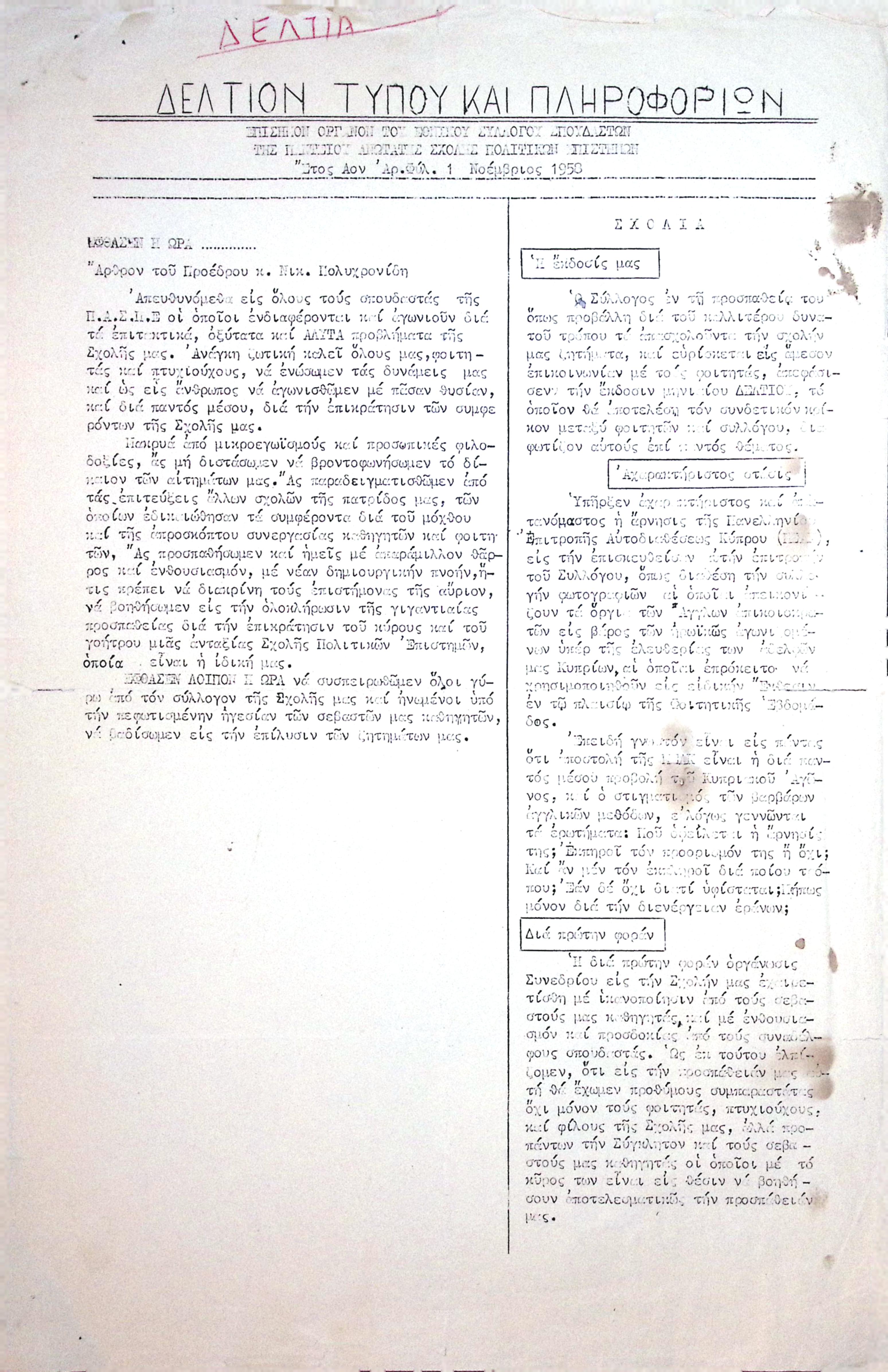 | Τίτλος | Δελτίον Συλλόγου Φοιτητών Πολυτεχνικής Σχολής |