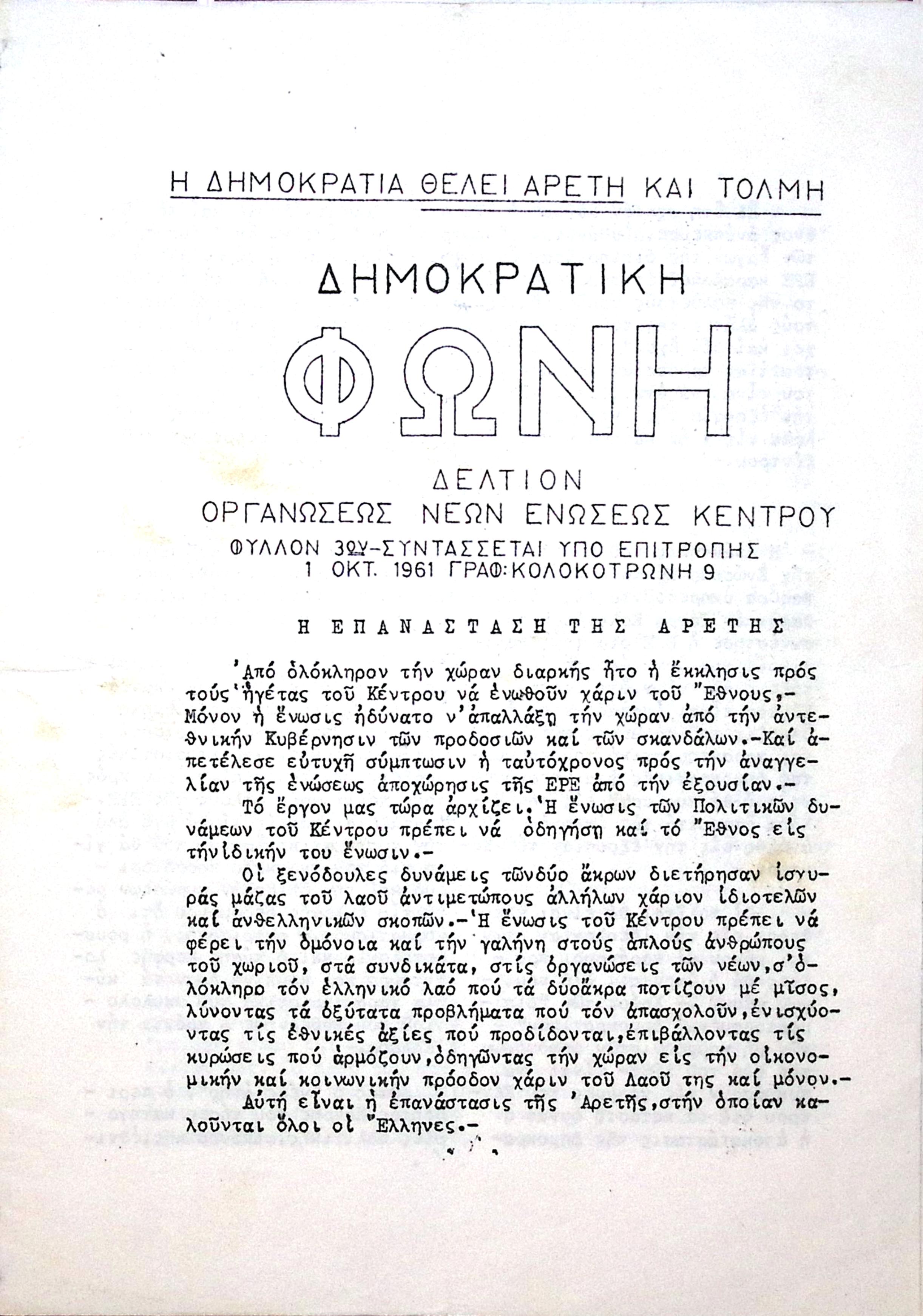 | Εκδότης | Ένωση Κέντρου / Οργάνωσης Νεολαίας |