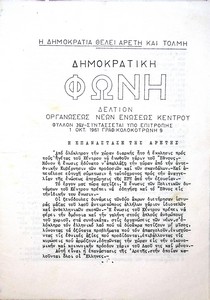 | Θέματα | ΕΦΕΕ (Εθνική Φοιτητική Ένωση Ελλάδος) : Union Nationale des Etudiants Grecs ΕΚΟΦ (Εθνική Κοινωνική Οργάνωσις Φοιτητών) ΕΔΑ (Ενιαία Δημοκρατική Αριστερά) ΠΑΕ (Πανελλήνια Αντιδικτατορική Ένωση) ΕΔΗΝ (Ελληνική Δημοκρατική Νεολαία) : Centre Union Youth ΕΡΕΝ (Εθνική Ριζοσπαστική Ένωσις Νεολαίας) ΟΕΦΕ (Ομοσπονδία Ελληνικών Φοιτητικών Ενώσεων) / Δ.Γερμανία-Δ. Βερολίνο |