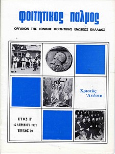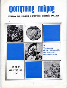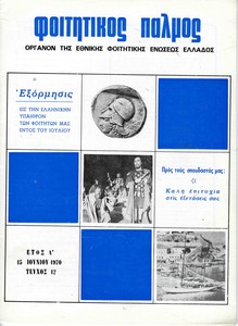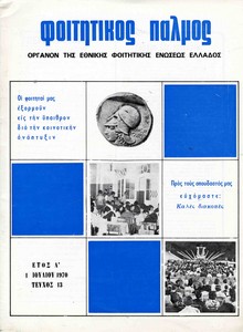 | Θέματα | ΕΦΕΕ (Εθνική Φοιτητική Ένωση Ελλάδος) : Union Nationale des Etudiants Grecs ΔΕΣΠΑ (Διοικούσα Επιτροπή Συλλόγων Πανεπιστημίου Αθηνών) ΕΦΕΕ / Εκπολιτιστική δράση Σύλλογος σπουδαστών υπομηχανικών Αθηνών |