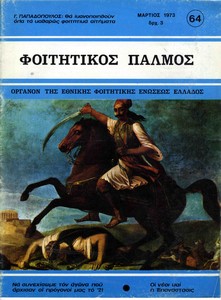 | Θέμα ως θέμα | Σχόλια επικαιρότητας Φοιτητές / Φοιτήτριες Γαλλική Επανάσταση 25η Μαρτίου / Επέτειος Φοιτητικές εκδηλώσεις Αντικομμουνισμός ΑΕΙ / διδακτικό προσωπικό Εκπαιδευτικά ζητήματα Ψυχική υγεία Εκπαίδευση / Τριτοβάθμια Ελληνοχριστιανική εκπαίδευση Πατριωτική αγωγή Φοιτητικός τύπος Αθλητικά νέα Δικτατορία 21ης Απριλίου 1967 / Προπαγάνδα Φοιτητικοί σύλλογοι Ελληνική Επανάσταση 1821 / Μνήμη |