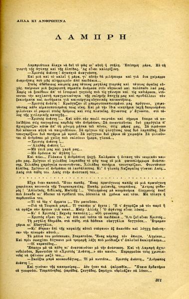 | Υπότιτλος | Ένα κεφάλαιο από το νέο ανέκδοτο και ατιτλοφόρητο ακόμα μυθιστόρημα |