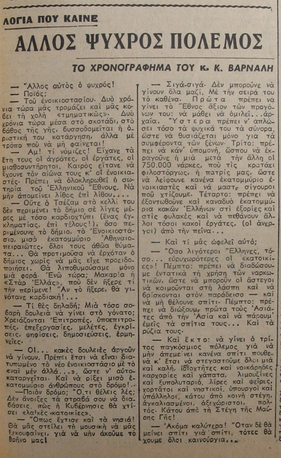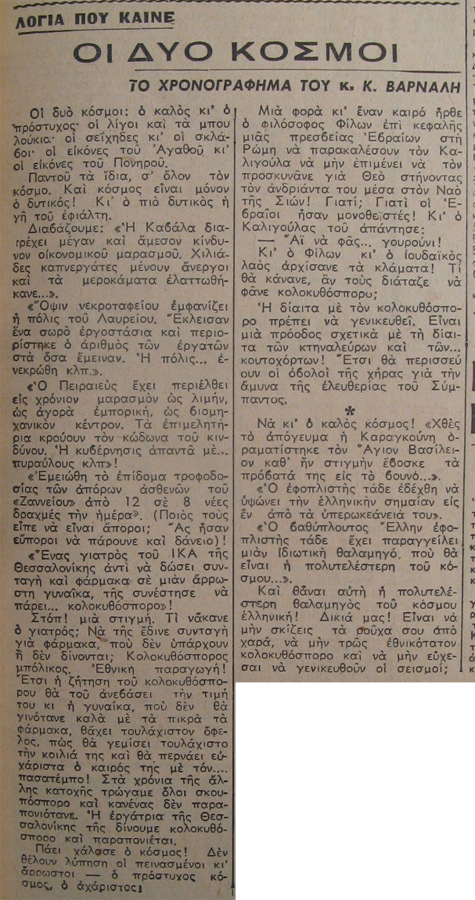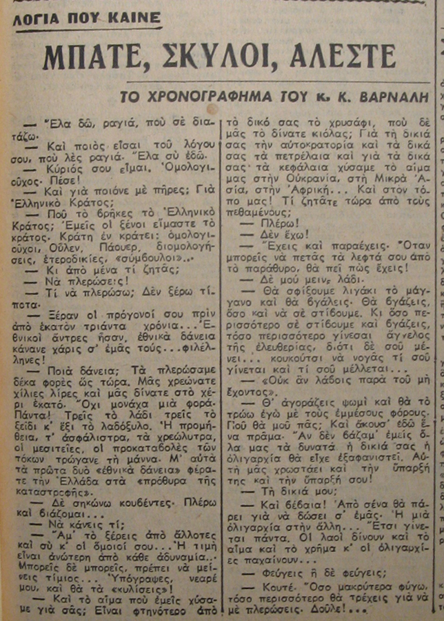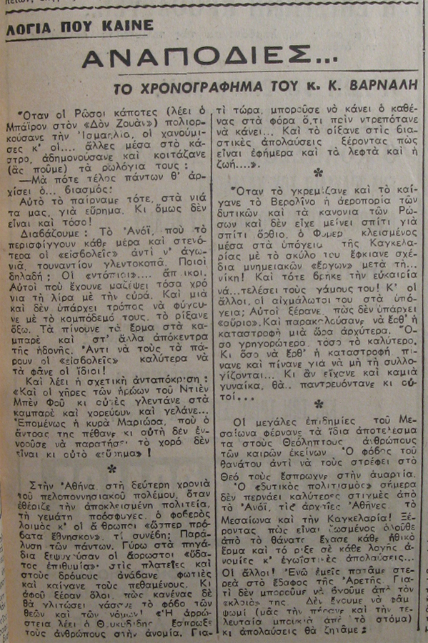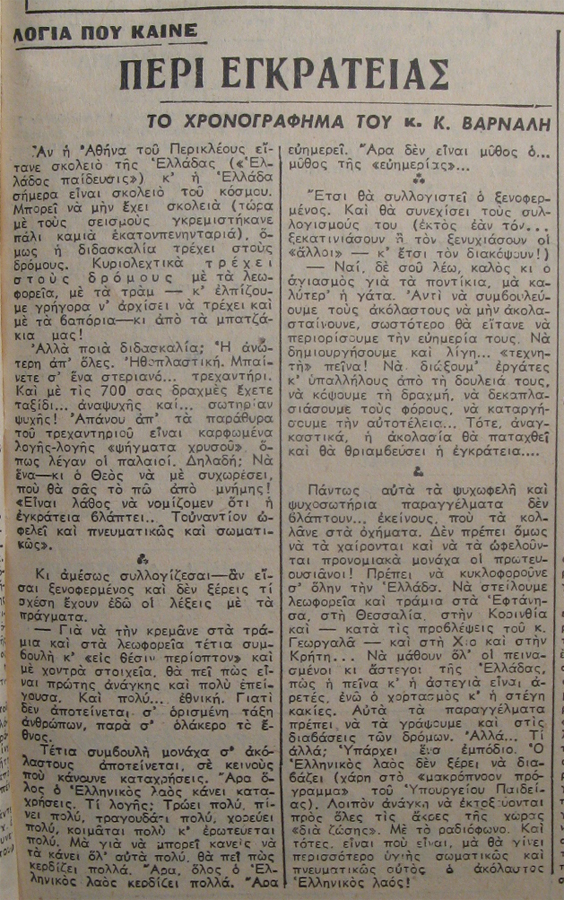 | Θέμα ως θέμα | Χρονογράφημα Ελληνική λογοτεχνία Ελληνική λογοτεχνία Τέχνη (Ελευθερία έκφρασης) |