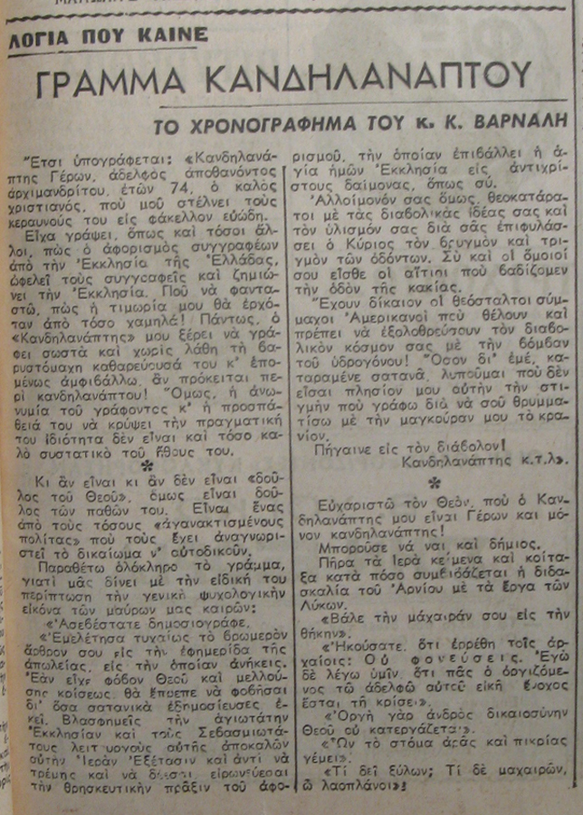 | Τίτλος | Αφορισμός εν λευκώ |