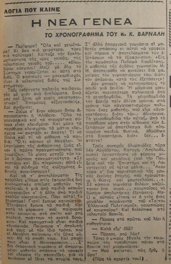 | Θέμα ως θέμα | Χρονογράφημα Ελληνική λογοτεχνία Ελληνική λογοτεχνία Νεολαία |