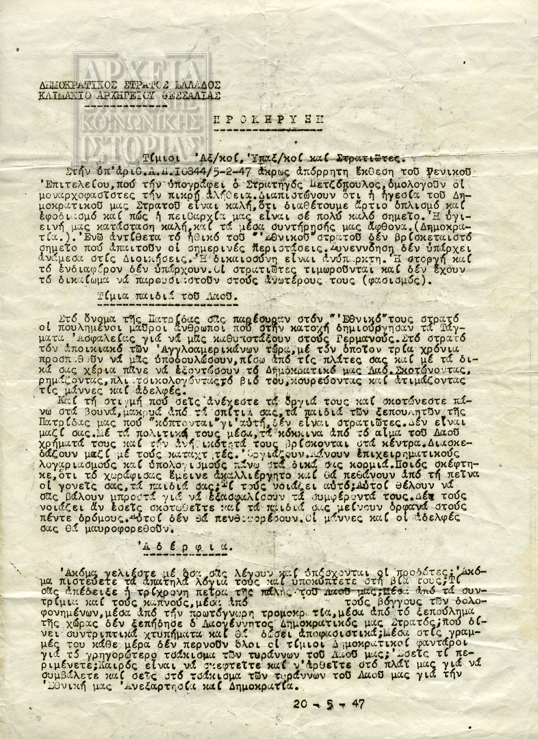 | Συντάκτης | ΔΣΕ / Κλιμάκιο Αρχηγείου Θεσσαλίας |