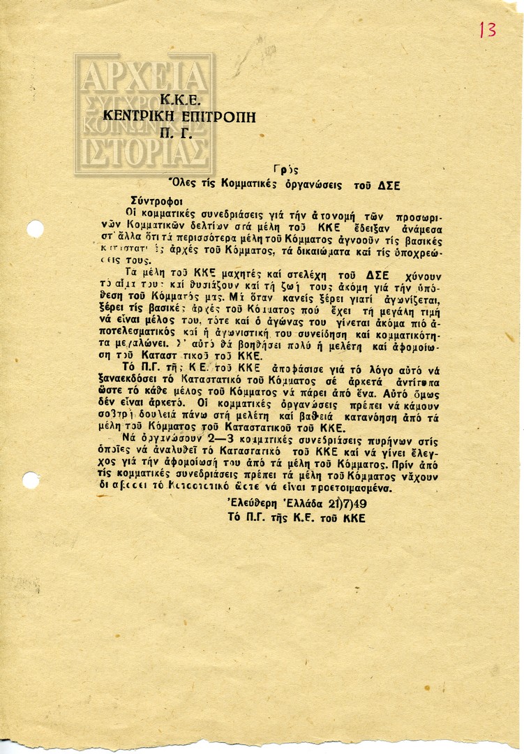| Τίτλος | Κ.Κ.Ε. Κεντρική Επιτροπή Π.Γ. Προς όλες τις Κομματικές οργανώσεις του ΔΣΕ |