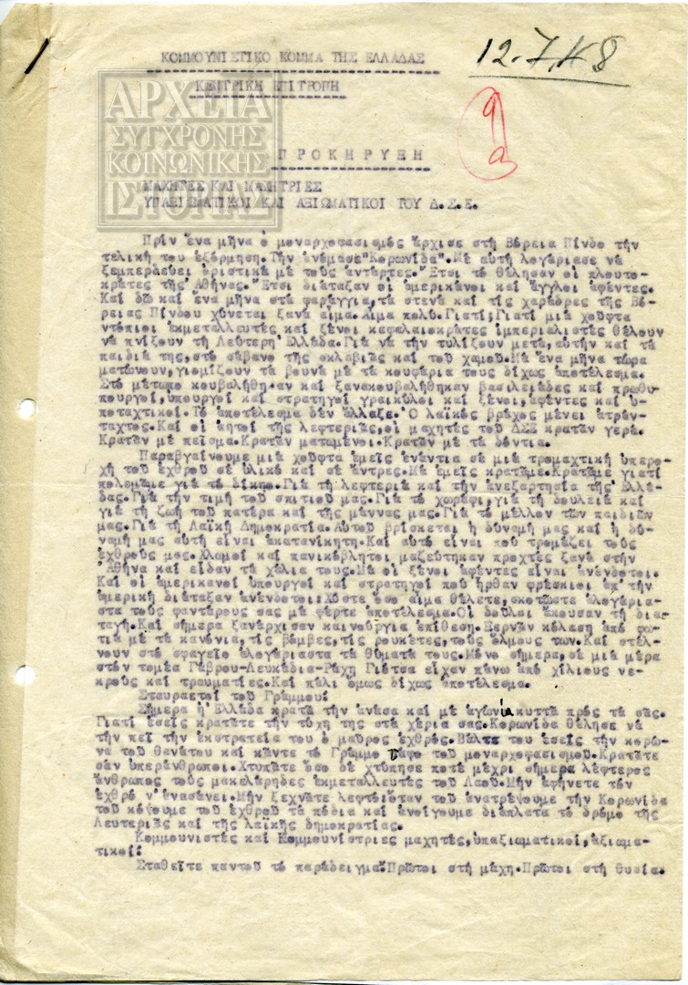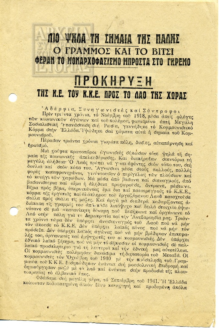 | Τίτλος | Προκήρυξη της Κ.Ε. του Κ.Κ.Ε. προς το λαό της χώρας |