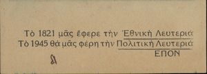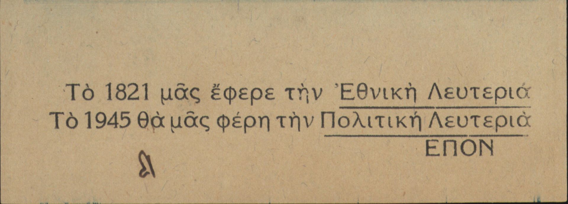 | Τίτλος | Το 1821 μας έφερε την Εθνική Λευτεριά - Το 1945 θα μας φέρει την Πολιτική Λευτεριά |