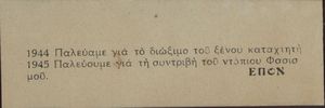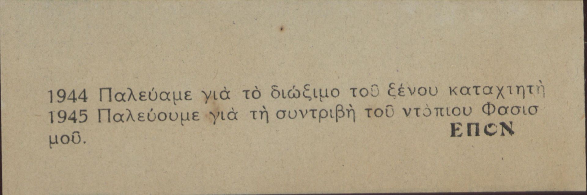| Τίτλος | 1944 Παλέψαμε για το διώξιμο του ξένου καταχτητή - 1945 Παλεύουμε για τη συντριβή του ντόπιου Φασισμού |