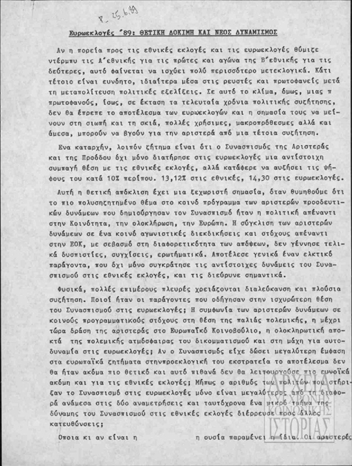 Τίτλος | Ευρωεκλογές '89: θετική δοκιμή και νέος δυναμισμός |