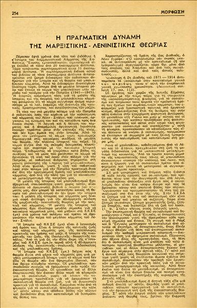 | Περιοδικό | Μόρφωση Δεκαπενθήμερη έκδοση της Κεντρικής Επιτροπής του Κομμουνιστικού Κόμματος της Ελλάδας |