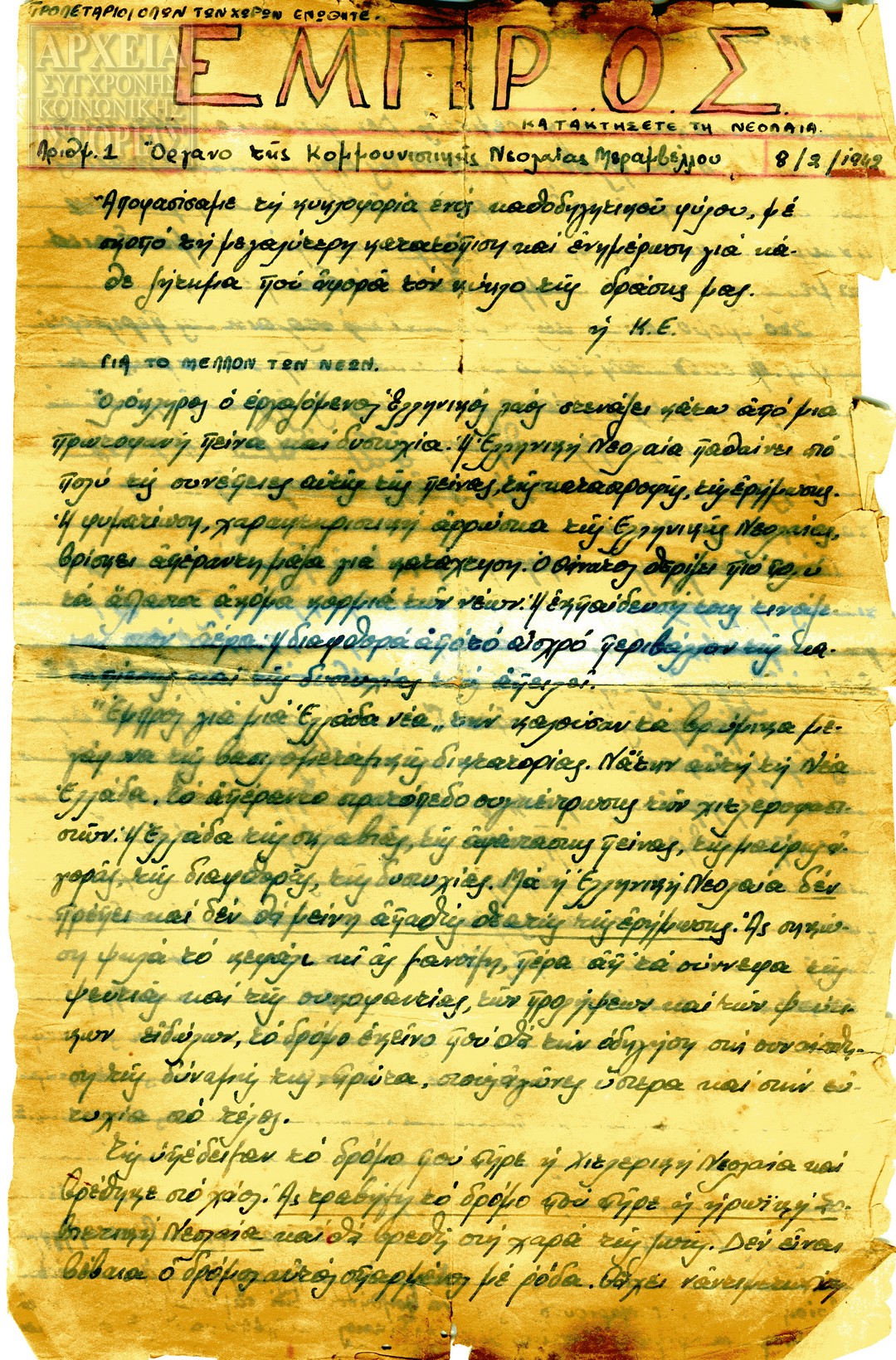| Υπότιτλος | Όργανο του Συμβουλίου Νομού της ΕΠΟΝ Ζακύνθου |