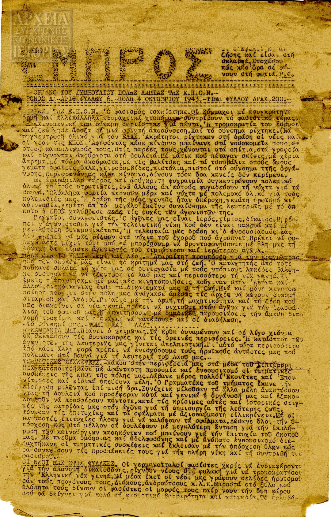 | Υπότιτλος | Όργανο του Συμβουλίου Πόλης Λαμίας της ΕΠΟΝ |