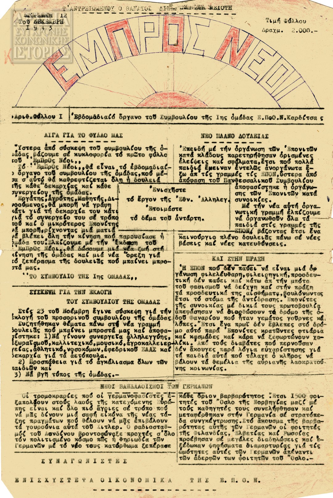 | Υπότιτλος | Όργανο του Τμηματικού Συμβουλίου ΕΠΟΝ Πενταχώρας |