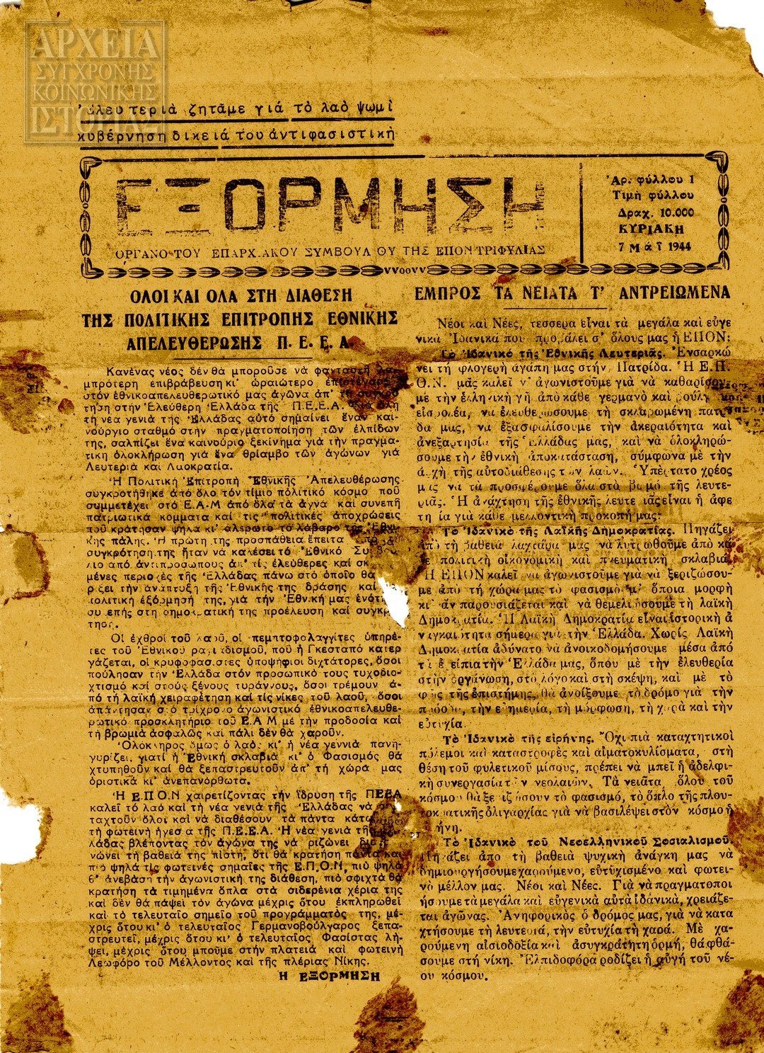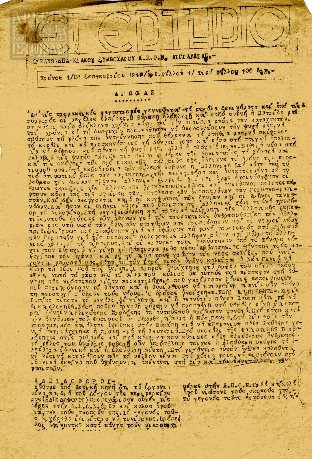 | Εκδότης | ΕΠΟΝ / Επαρχιακό Συμβούλιο Αιγιαλείας |