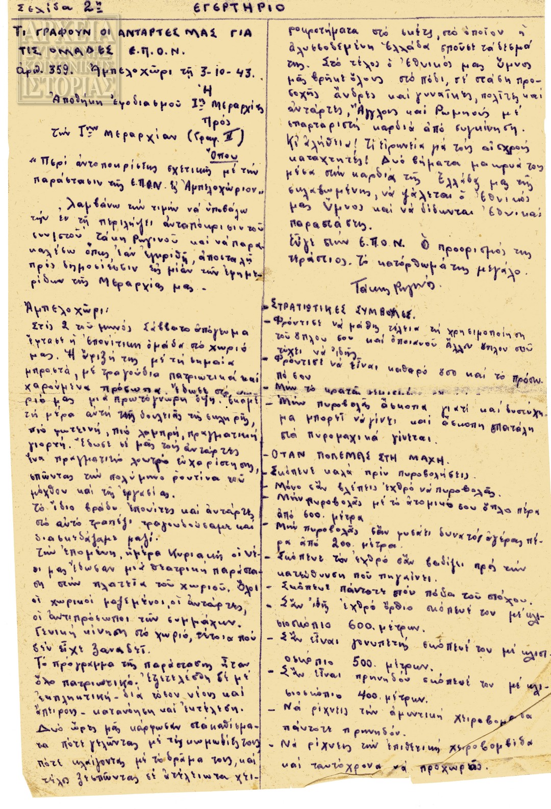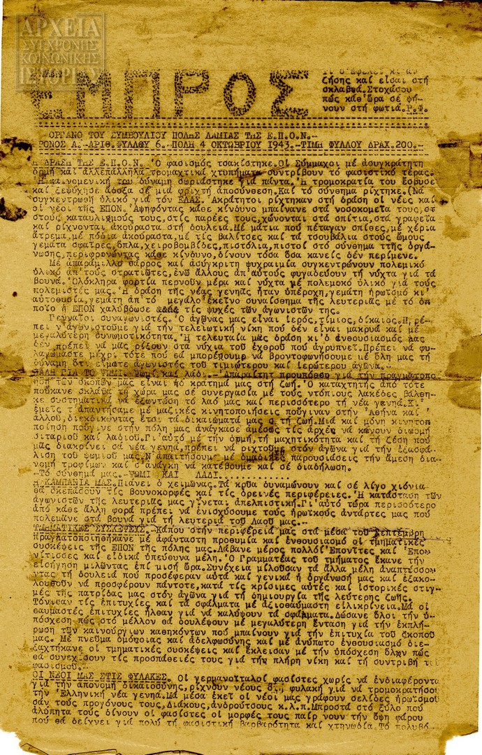 | Θέμα ως θέμα | Κατοχή - Αντίσταση Αντιστασιακός τύπος ΕΠΟΝ / Συνδιασκέψεις ΕΠΟΝ / θύματα αντίστασης Αντιστασιακές οργανώσεις Γερμανική Κατοχή / εκτελέσεις |