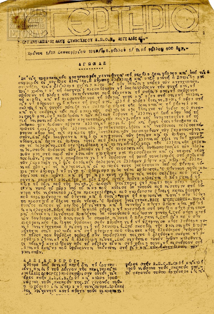 | Υπότιτλος | Όργανο των Κρατουμένων Επονιτών Φυλακών Κάτω Πετράλωνα |