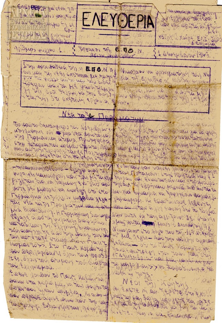 | Θέμα ως θέμα | Κατοχή - Αντίσταση 28η Οκτωβρίου / επέτειος Αντιστασιακός τύπος Αντιστασιακές οργανώσεις |