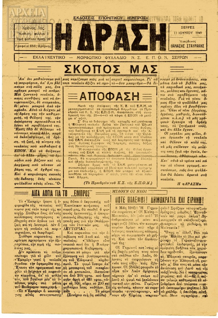 | Εκδότης | ΕΠΟΝ (Ενιαία Πανελλαδική Οργάνωση Νέων) |