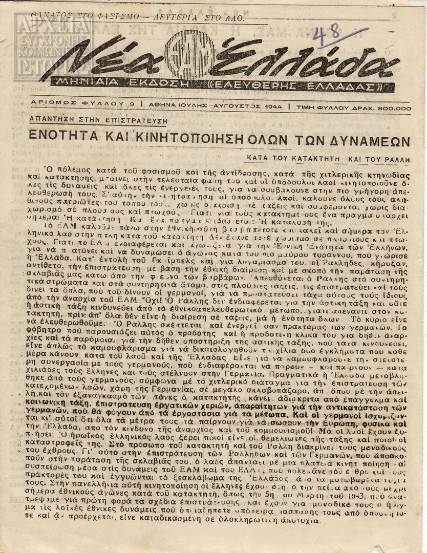 | Θέματα | ΕΛΑΣ (Ελληνικός Λαϊκός Απελευθερωτικός Στρατός) ΕΠΟΝ (Ενιαία Πανελλαδική Οργάνωση Νέων) Ε.Π.Ο.Ν. / Τύπος Θεσσαλονίκη |