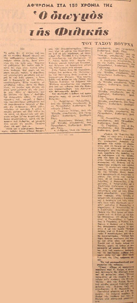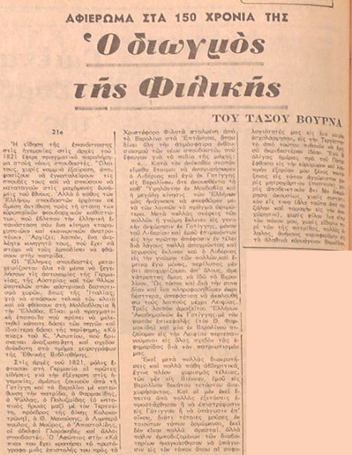 | Υπότιτλος | Αθανασίου Ξοδίλου "Η εταιρεία των φιλικών και τα πρώτα συμβάντα του 1821".Ανέκδοτα απομνημονεύματα εκδίδουν Λ.Βρανούσης-Ν.Κουμαριανός |
