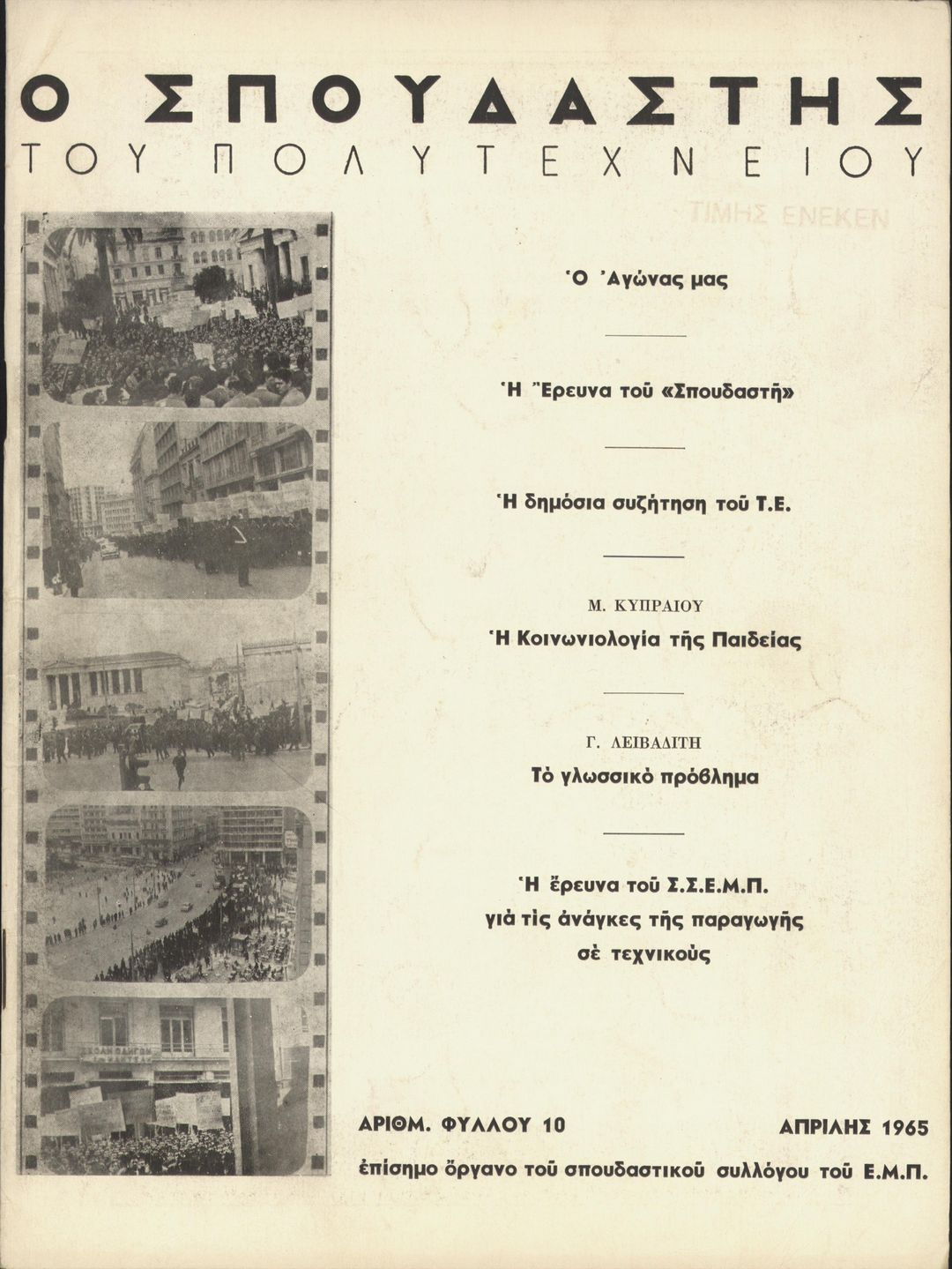 | Υπότιτλος | Επίσημο όργανο του σπουδαστικού συλλόγου Ε.Μ.Πολυτεχνείου (Σ.Σ.Ε.Μ.Π.) |