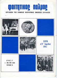 | Θέματα | ΕΦΕΕ (Εθνική Φοιτητική Ένωση Ελλάδος) : Union Nationale des Etudiants Grecs ΦΕΑΠΘ (Φοιτητική Ένωση Αριστοτελείου Πανεπιστημίου Θεσσαλονίκης) ΕΦΕΕ / Εκπολιτιστική δράση ΑΣΟΕΕ / Εθνικός Σύλλογος Σπουδαστών ΑΣΟΕΕ |